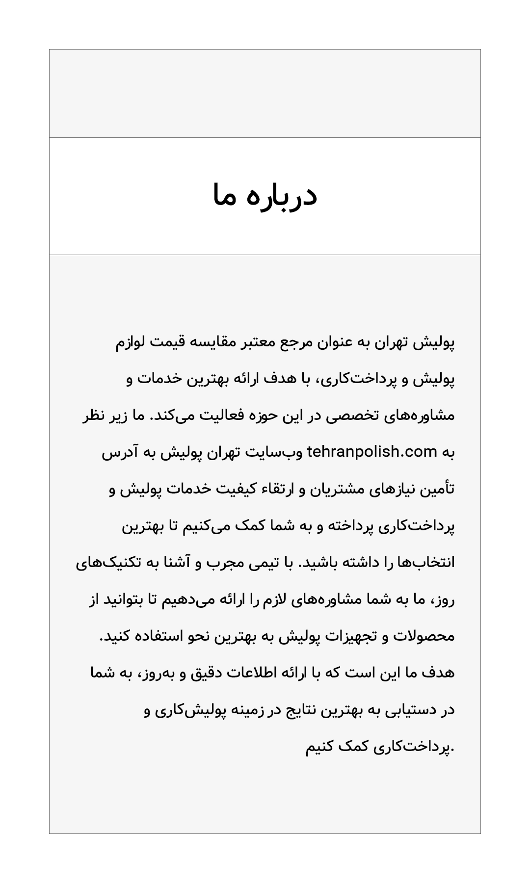 بزرگترین فروشنده انواع لوازم پولیش و پرداخت کاری در کشور که شما عزیزان میتوانید از طریق وبسایت ما بسیاری از قیمت های همکاران و ویدیوها و مقالات مرتبط با مشاهده کنید. تهران پولیش با بهرهمندی از نیم قرن سابقه درخشان در صنعت پرداختکاری، به عنوان یکی از اولین و معتبرترین تولیدکنندگان دستگاههای پرداختکاری، واکسهای پرداختکاری، گیلانسهای پرداختکاری و مواد اولیه پولیش شناخته میشود. این برند با تکیه بر دانش فنی و تجربه بالا، اقدام به تولید انواع گیلانسهای نخی، لی، کتان و پشمی، سنباده و دیگر ملزومات پرداختکاری کرده است. تیم متخصص تهران پولیش همواره در تلاش است تا با استفاده از تکنولوژیهای روز و بهترین مواد اولیه، محصولاتی با کیفیت بالا و کارایی عالی را به مشتریان خود ارائه دهد. ما به کیفیت و دقت در هر مرحله از تولید اهمیت میدهیم و به همین دلیل، محصولات ما در صنایع مختلف از جمله خودروسازی، صنایع چوب، فلز و ... به کار میروند. علاوه بر تولید، تهران پولیش به ارائه مشاوره تخصصی و خدمات پس از فروش نیز میپردازد. ما در اینجا هستیم تا به شما کمک کنیم تا بهترین راهکارها و محصولات را برای نیازهای خود پیدا کنید. با توجه به تنوع محصولات و خدمات ما، میتوانید با اطمینان خاطر انتخاب کنید و از کیفیت برتر محصولات ما بهرهمند شوید. ما مفتخریم که به عنوان یک برند پیشرو در صنعت پرداختکاری، همواره در مسیر نوآوری و بهبود کیفیت حرکت کنیم. تهران پولیش، انتخاب اول شما برای تمامی نیازهای پولیش و پرداختکاری است.